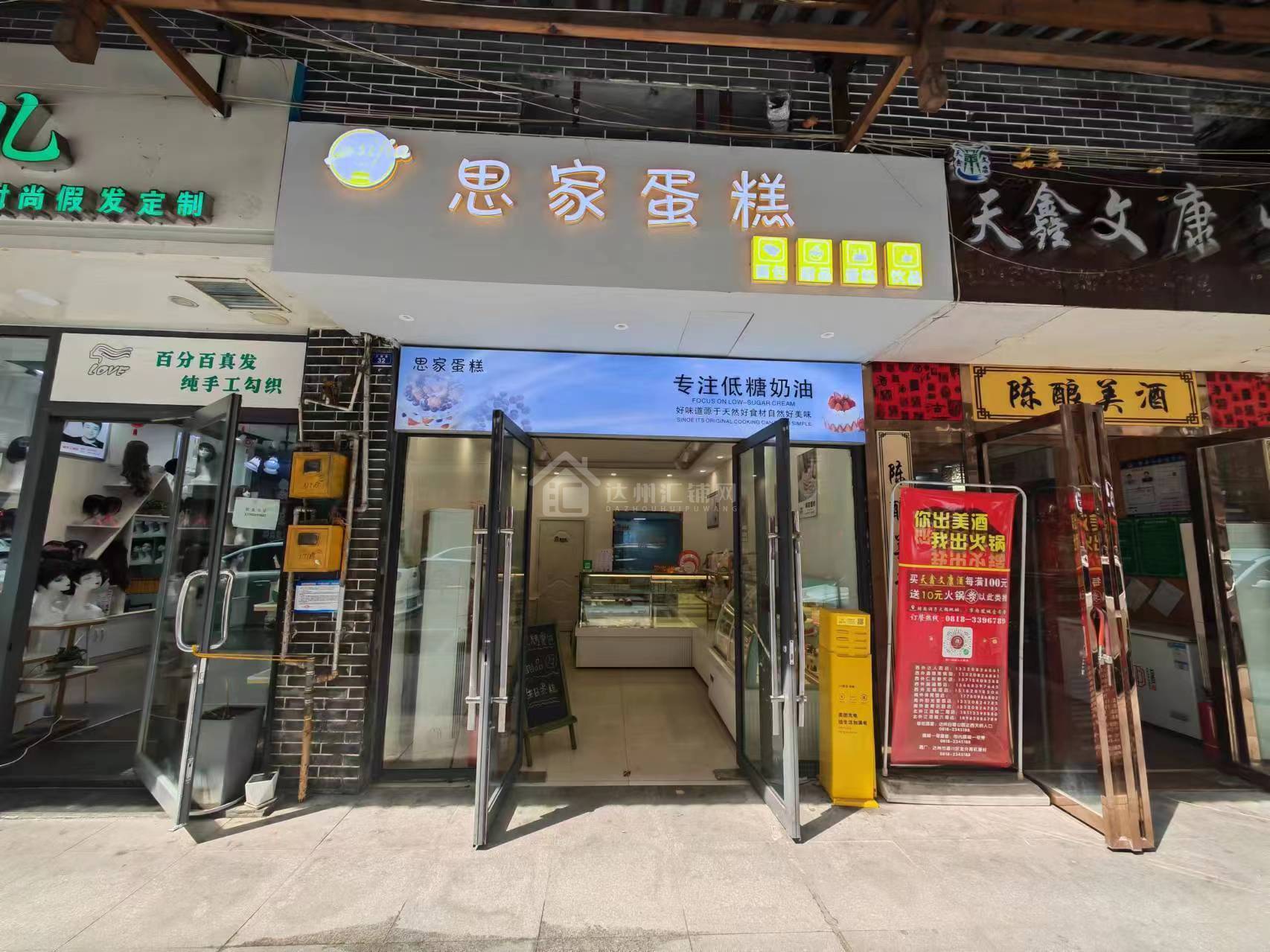 西外达人街临街有一蛋糕店对外转让,面积50平左右,全新精装修,门头大气敞亮,店内所有设施设备齐全,同行接手就可经营,周围商圈密集,居民楼多,人流量大,客源丰富稳定,因本人无时间精力管理故诚心对外转让,欢迎有意者可实地考察面谈!