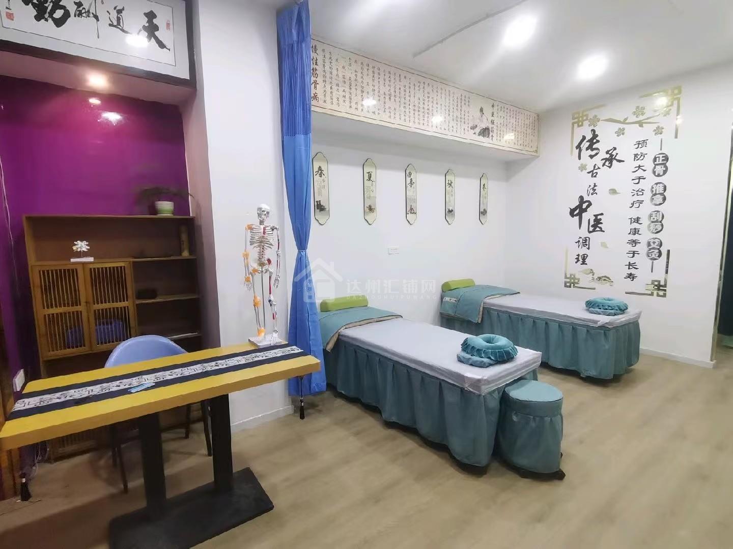 大竹建设路有一养生馆对外转让,主要针对中医康复理疗针灸正骨养生美容按摩拔罐,面积56平左右,全新精装修,门头大气敞亮,,店内所有设施设备齐全,同行接手就可经营,周围商圈密集,居民楼多,客源丰富,因本人无时间精力管理故诚心对外转让,欢迎有意者可实地考察面谈!